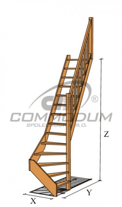Holztreppe LIMBA - 1/4 gewendelte (unten), h.2940Genaue Abmessungen suchen Sie bitte hier: Höhe/Breite der Stufe: 210/120 Steigung 60° 18 ' Brechung: links/rechts |